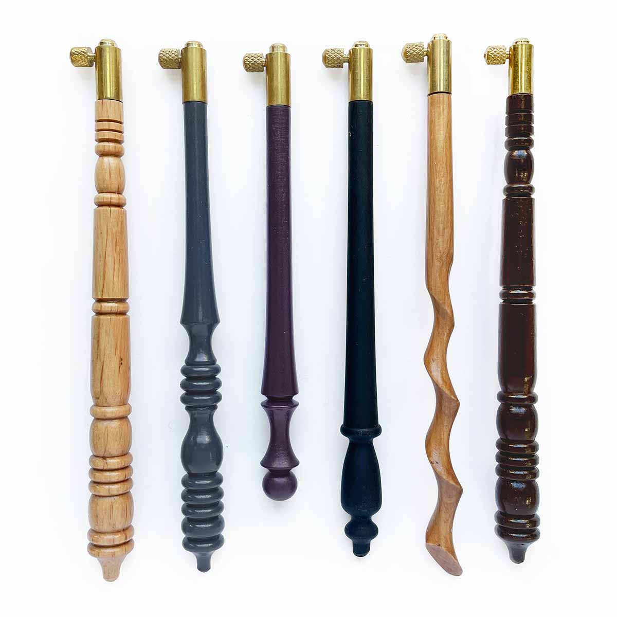 Unpainted Carved, Dusty Blue, Dark Purple, Matte Black, Unpainted Spiral, Dark Brown Carved