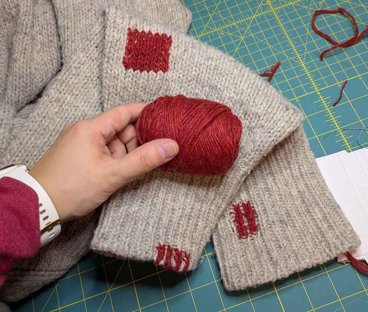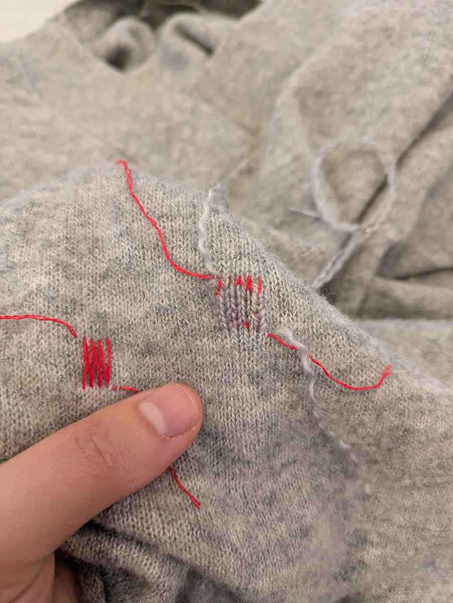Swiss Darning is a mending technique that uses a needle and yarn to re-knit holes in knit fabrics for an “invisible” or bold and geometric look. In this workshop, you will be provided a knit sample and a mini-zine to follow along in a step-by-step Swiss darning demonstration. After the demo, students are invited to mend their own knit items. If you bring any moth-eaten items, please wash and/or freeze them for a week first!