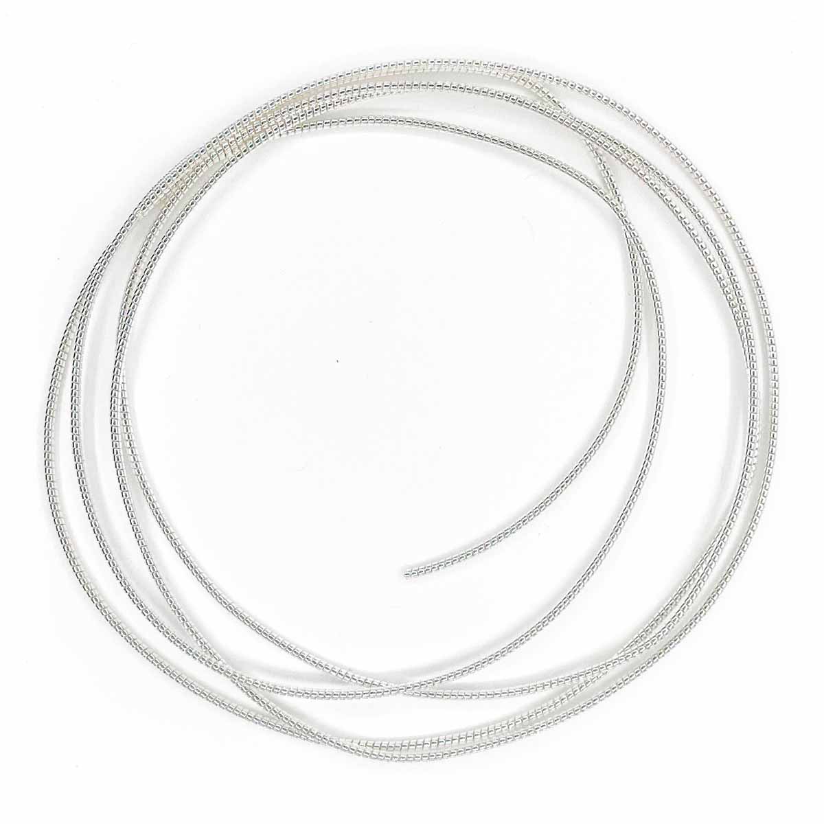 Silver plated lizerine (also called lizardine) is a tightly coiled, silver-plated copper wire with a texture like a string of cylinder beads that can be stretched to various extents to create interesting shapes and effects for surface embroidery.